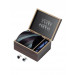 Round cufflinks with steel coloured rim hinged back to hold cuff in place