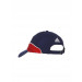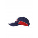 Navy blue and red polyester cap made of Clima Cool material with comfort Fit, crown made of breathable mesh and team graffiti in front with white stripes along the visor