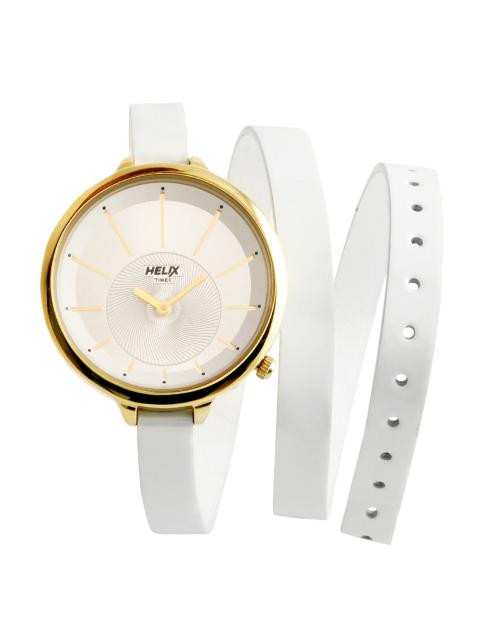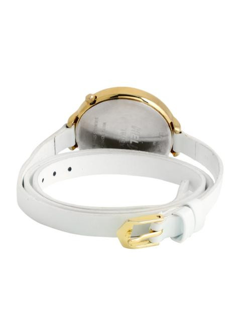 Strap style: White genuine leather extra long strap for double wrap and a tang clasp for comfort and style