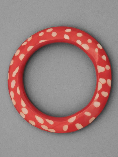 Red bangle, has a faceted surface with dotted patterns