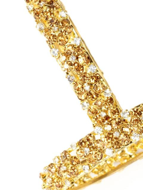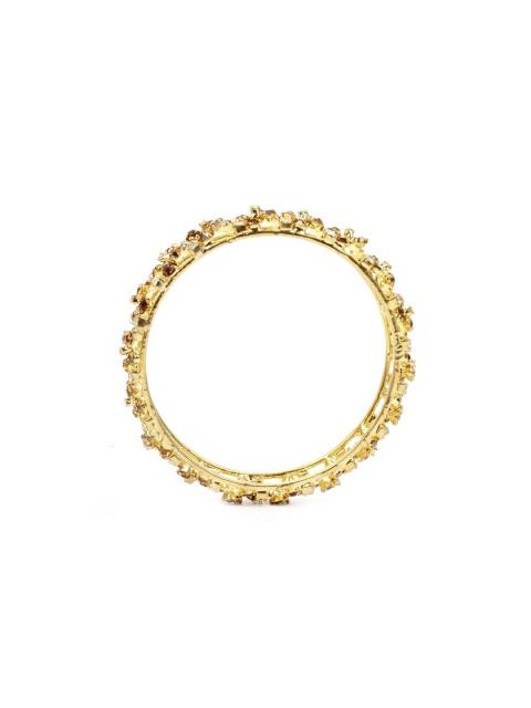 Golden coloured bangles, has two thin golden bangles with white and gold stone floral detail connecting the two to make one broad bangle
