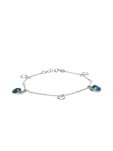 A silver chain like bracelet with links in the centre and sapphire colour stones