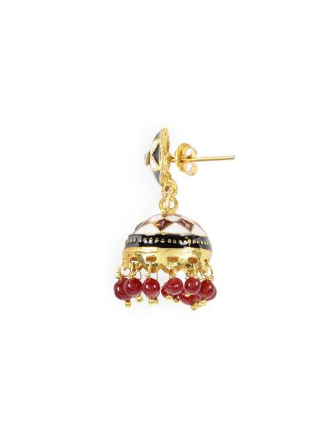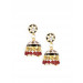 Gold toned jhumka (bell shaped dangler) earrings with a round base encrusted with a white stone