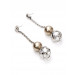 Silver earrings with a chain which has a bronze coloured pearl drop with a cut-out spherical drop below it