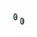 Oval wooden loop earrings with turquoise stone set in 92.5 silver, has a french hook closure