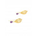 Leaf shaped, basket styled earrings in silver with gold plating, amethyst drop below, has a french hook slide in style for wearing it