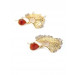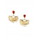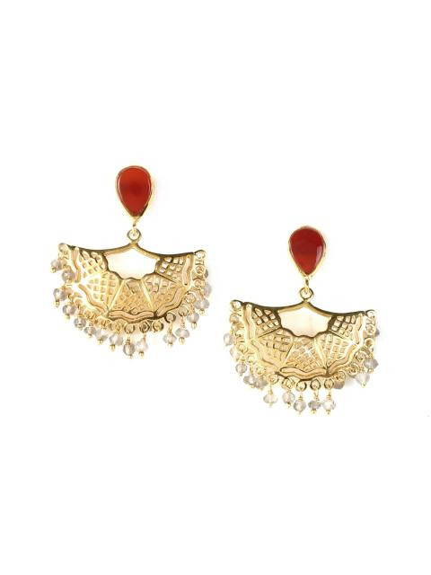 Silver gold plated earrings with royal cornelian stone studs and lattice work drops with smokey quartz at the periphery, has a push back closure