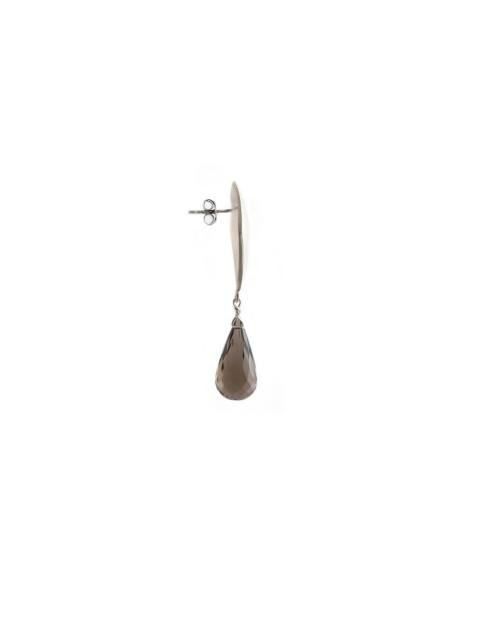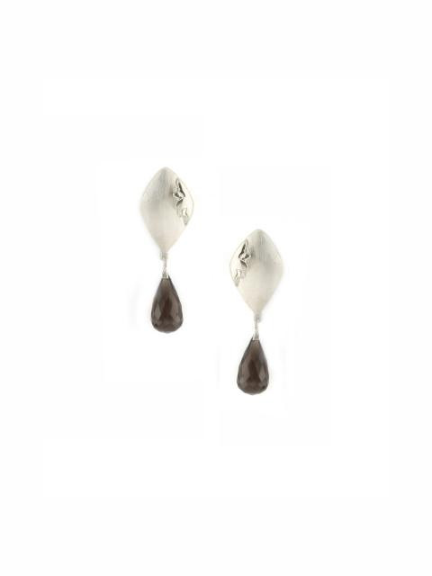 Diamond shaped earrings with floral pattern and smokey quartz drop below, has a push back closure