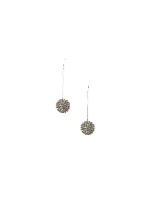 Silver dangler earrings with a spherical textured drop, has a french hook slide in style for wearing it
