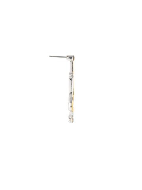 Earring shaped like two criss-crossing curves, one in silver and one gold