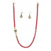 Style NoteInspired from India's rich jewel history, this set of earrings and chain from royal diadem is sure to become a love-forever statement piece in your jewellery box. Style this with matching ethnic suits or saris or wear it with a monochrome ensemble for an interesting fusion vibe. This piece is guaranteed to give your look an instant boho edge (if it's a Western outfit) or a refined polish (if paired with ethnic wear)Product DetailsInverted umbrella shaped dangler with colourful stone embellishmentsHas red beads above the danglerHas a push back closureRed beaded chain with conical shaped embellishment at the centre with pearl like beads and colourful stonesHas an adjustable hook closureMaterial and CareGold plated metalWipe with a cotton swab to remove dustSizeLength: 9 cmStyle Note