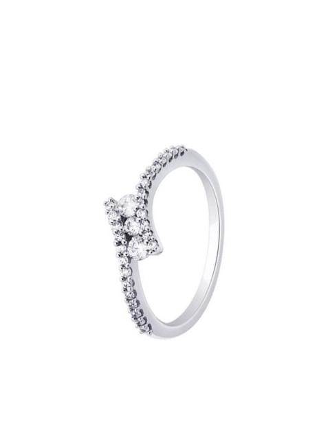 Slim silver band that curves tangentially at the centre, encrusted with white stones