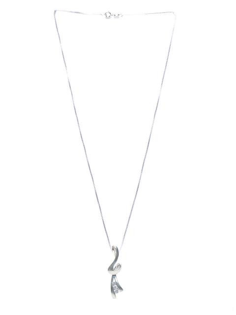 A dangling curvy silver pendant with three CZ diamonds encrusted in the centre