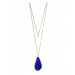Blue asymmetrical oval shaped pendant with a gold base and sides