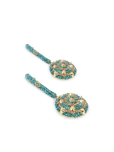Inspired from India's rich jewel history, this pair of earrings from royal diadem is sure to become a love-forever statement piece in your jewellery box. Style this with matching ethnic suits or saris or wear it with a monochrome ensemble for an interesting fusion vibe. This piece is guaranteed to give your look an instant boho edge (if it's a Western outfit) or a refined polish (if paired with ethnic wear)