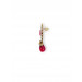 Round shaped base with garnet coloured stone in the centre, pearl like bead detail around the stone