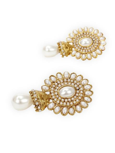 Inspired from India's rich jewel history, this pair of earrings from royal diadem is sure to become a love-forever statement piece in your jewellery box. Style this with matching ethnic suits or saris or wear it with a monochrome ensemble for an interesting fusion vibe. This piece is guaranteed to give your look an instant boho edge (if it's a Western outfit) or a refined polish (if paired with ethnic wear)