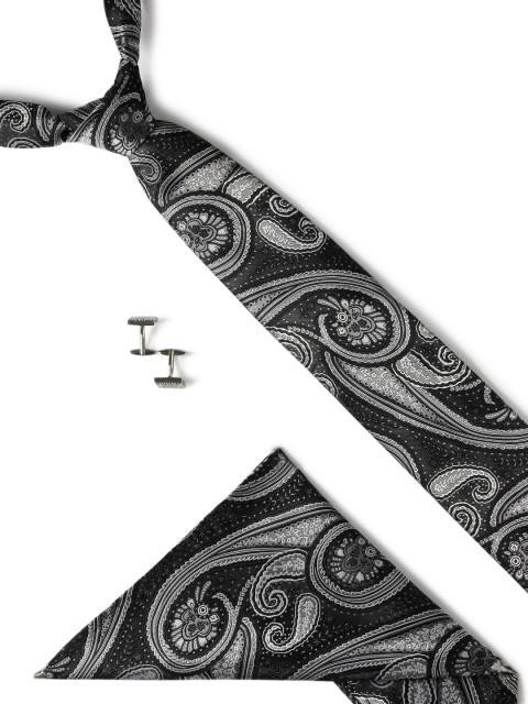 Specially woven on a Jacquard loom for vintage sophistication, this tie and pocket square set with cufflinks from Linos Perros is a great gift option or a delicious self-indulgence. The cosomopolitan man's formal wardrobe is not complete without colour options in ties, cufflinks and pocket kerchiefs.