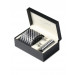 Specially woven on a Jacquard loom for vintage sophistication, this tie and pocket square set with cufflinks from Linos Perros is a great gift option or a delicious self-indulgence. The cosomopolitan man's formal wardrobe is not complete without colour options in ties, cufflinks and pocket kerchiefs.