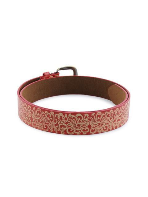 With embossed ethnic print in a traditional red and cream combination, this belt from lino perros blends perfectly with denim trousers or shorts and ethnic tops.