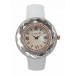 Stainless steel round case with crystal embellishments and a thick glass on the bezel