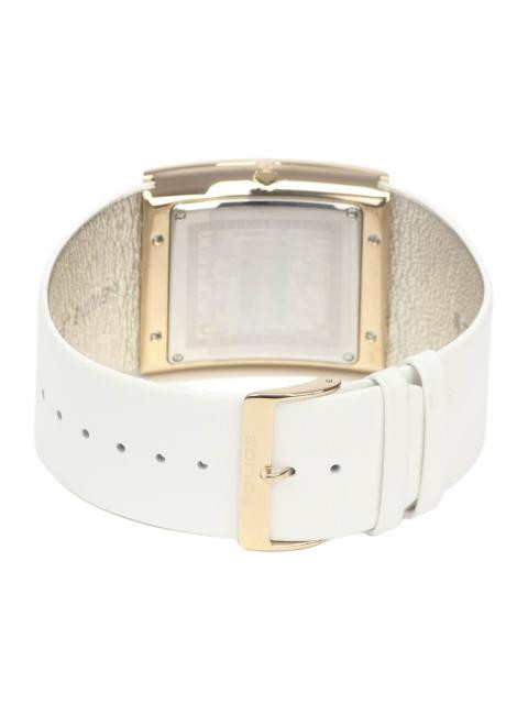 Strap style: White leathernbsp;strap secured with a tang clasp