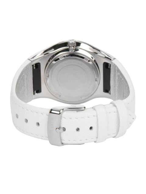 Strap style:nbsp;White genuine leather strap with a tang clasp