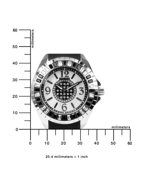 Case style: Analogue watch with a circular case and a stainless steel back, has a fixed bezel with stone-studded detail