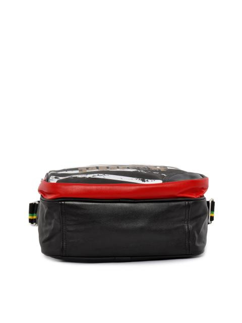 High on style, this black messenger bag is perfect for carrying on as cabin baggage or for daily use. With super strong webbing straps and re-enforced seams giving it a heavy-duty look, the style of this bag is enhanced by the faded out urban print on the front pocket. The Jamaican inspired colours on the strap and zippers will give you an added edge of cool &ndash fill the bag with your Bob Marley vinyl records.