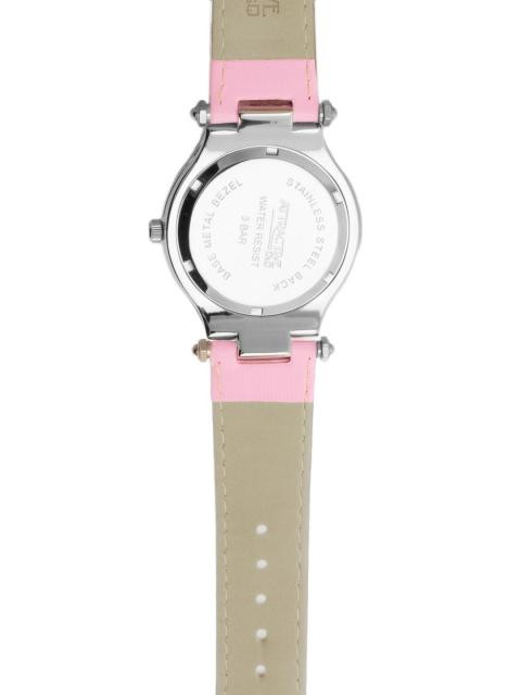 Dial Style: Pink dial with a striped detail that converges in the centre, branding on the dial and steel coloured hour marks and hands