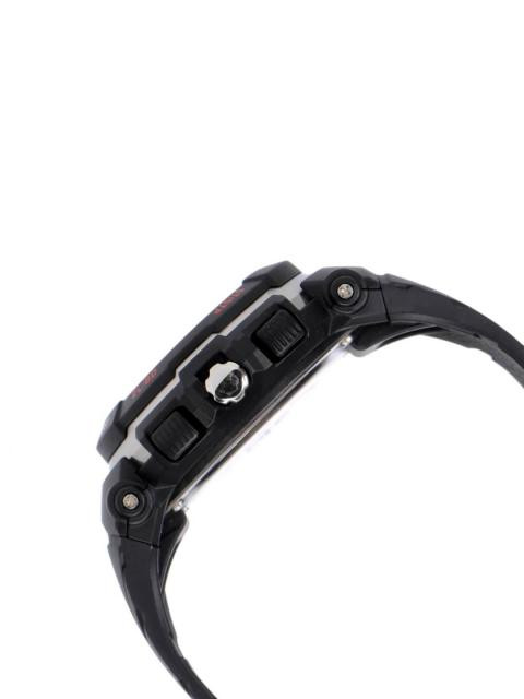Case style: Analogue and digital watch, has a round case and a stainless steel back