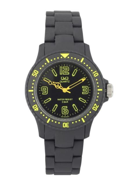 Dial Style: Black dial with a tachymeter inside, branding on the dial, yellow coloured hands and lime green hour marks