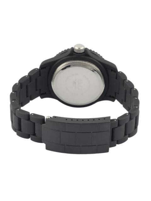 Strap Style: Black plastic strap with a stainless steel buttefly clasp