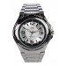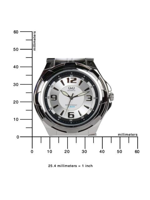 Dial style: Silver-toned and white dial, has markings, three hands