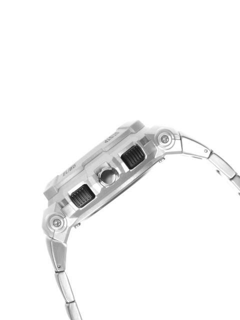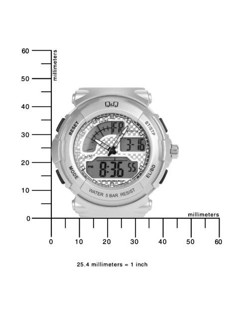 Case Style: Analog and digital watch with a plastic case and bezel, has a stainless steel back on the case
