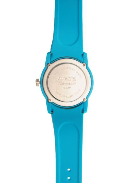 Dial style: Blue dial with white hands and branding displayed on the dial