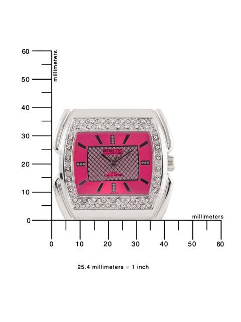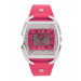 Dial style: Pink dial with metallic hands, crystal embellishments and branding displayed on the dial