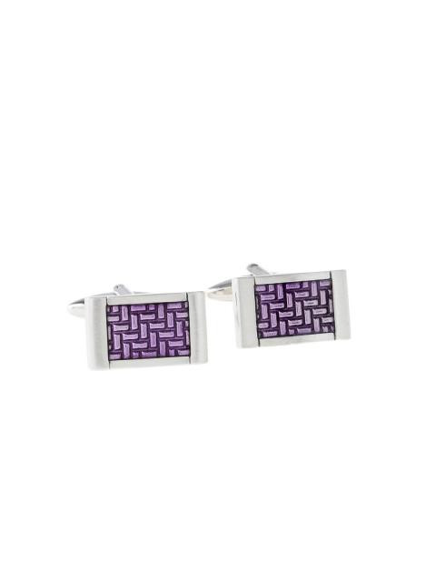 Steel coloured pair of cuff-links with purple tinted weave detail