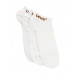 White ankle length trainer socks with a spandex in welt for better grip, branding at the welt, arch support for better grip and fit and a breathable mesh sole