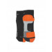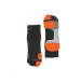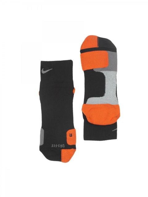 Black and orange soccer socks, made of a polyester-nylon-spandex mix fabric, with Dri-Fit and nike Swift technologies and reinforced heel and toe for enhanced durability