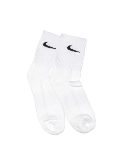 White Sports socks made of 77% cotton, 22% nylon and 1% spandex, with arch support and half-cushion terry foot