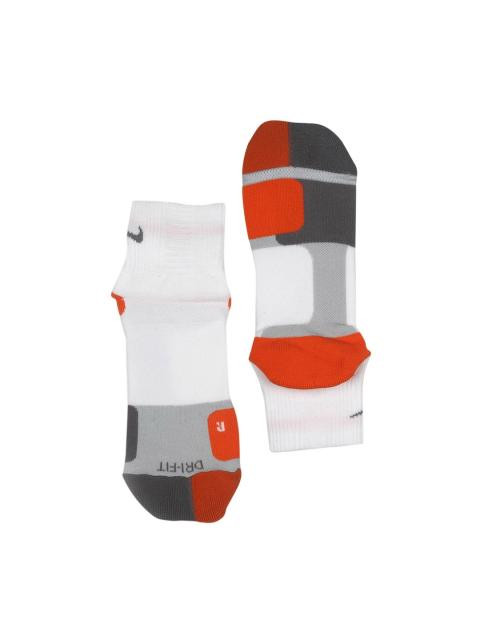 Grey and orange soccer socks, made of a polyester-nylon-spandex mix fabric, with Dri-Fit and nike Swift technologies and arch compression