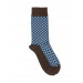 Brown knitted socks with blue check patterning along the calf region and top of the foot