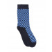 Navy blue knitted socks with blue check patterning along the calf region and top of the foot