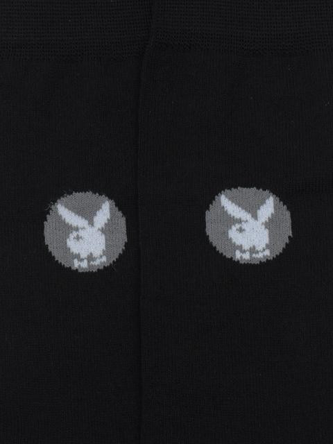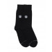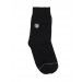 Black, above ankle length socks with striped detail at the toe region, elasticated and ribbed cuffs with branding below it on both sides