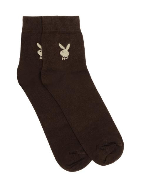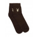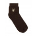 Dark brown socks, has branding near the ankle, elasticated cuffs for a firm grip and sanitised to keep it hygienic, fresh and unpleasant odours away
