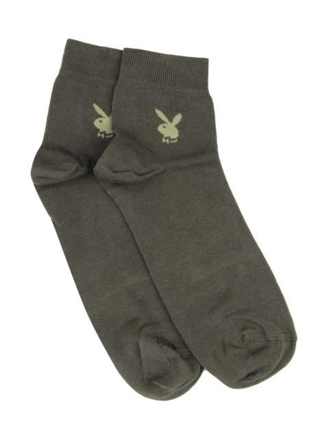 Greenish brown, above ankle length socks, elasticated and ribbed cuffs with branding below it on both sides