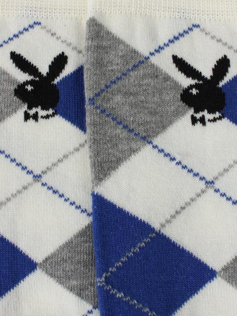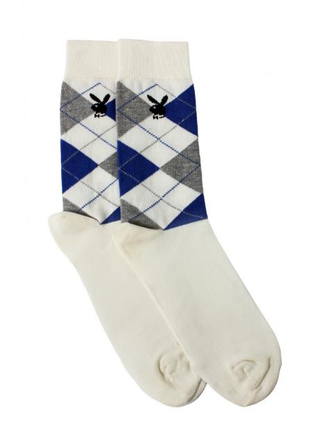 It's comfort unparalleled once you slip into these socks from playboy. Made of a blended fabric, these cream and blue diamond design socks can be worn both for sporting events and casual days.