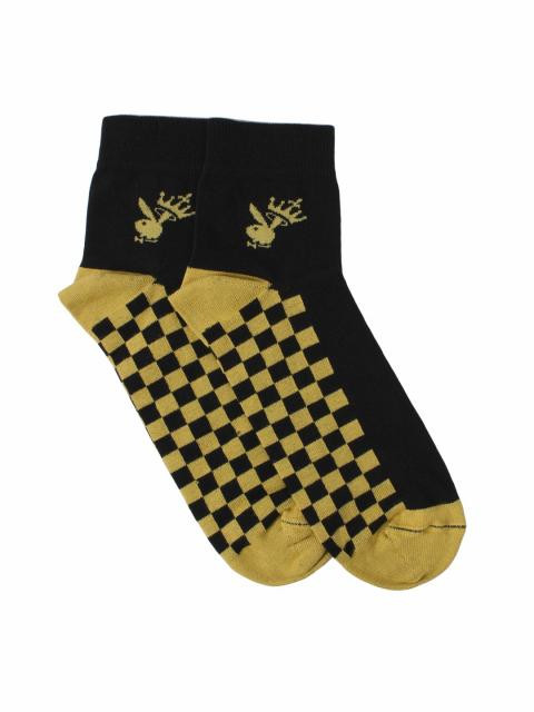 It's comfort unparalleled once you slip into these ankle socks from playboy. Made of a blended fabric, these yellow and black checked socks can be worn both for sporting events and casual days.