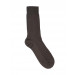 Brown knitted socks with elasticated cuffs, has striped patterning